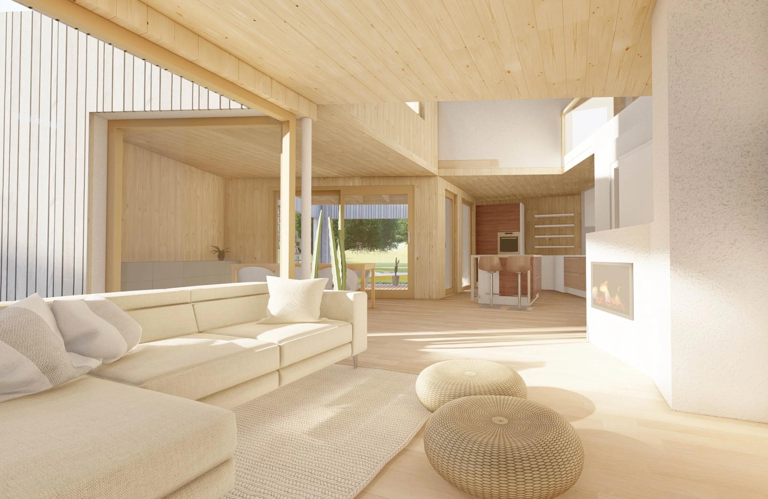 ein natürliches Massivholzhaus, das pragmatisch, aber nicht spartanisch ist – reduziert und doch unbescheiden wohnlich und modern.